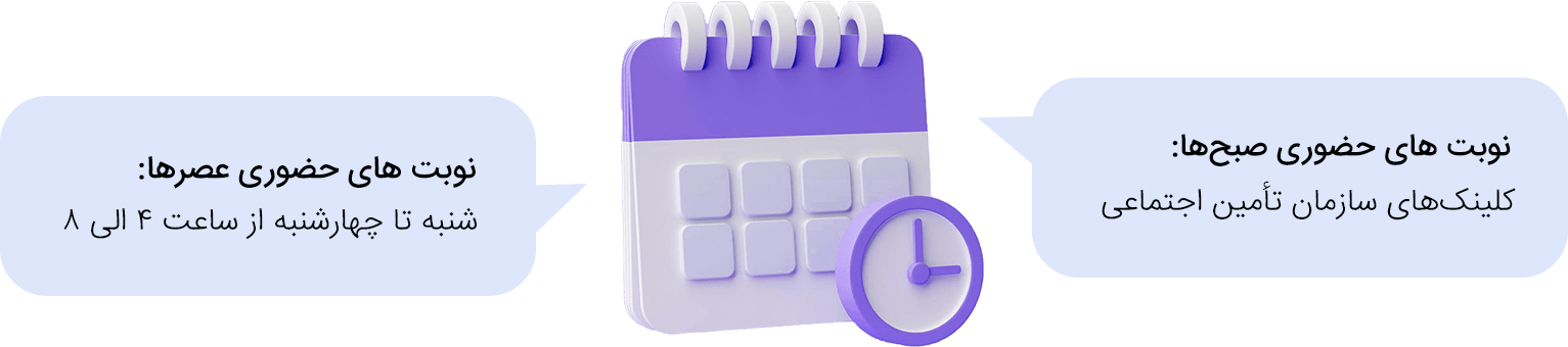 در برخی موارد در روزهای **** و در ساعت های ****، مشاوره تلفنی یا آنلاین ارائه میشود، اما برای تشخیص و درمان دقیق، مراجعه حضوری توصیه میشود.